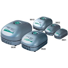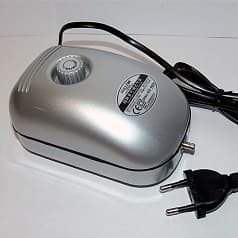 Двухканальный, 2×12 л/ч, для аквариумов глубиной до 50 см и объёмом до 200 л. Бесшумный.