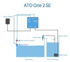Система автодолива с насосом, датчиком уровня воды, датчиком перелива и возможностью подключения датчика осушения емкости автодолива. Обновленная версия ATO ONE SE.