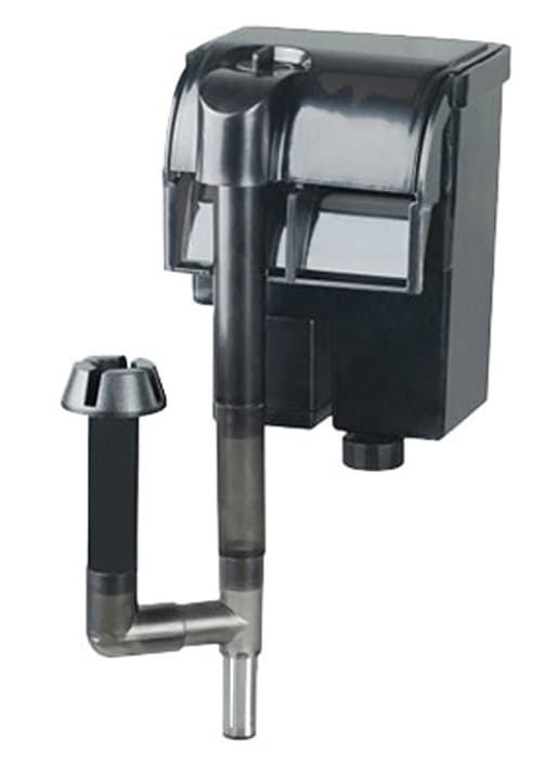 Навесные (рюкзачные) фильтры для аквариума занимают промежуточное положение между внутренними и внешними фильтрами. Эти фильтры навешиваются на стенку аквариума, через заборную трубку вода засасывается в фильтр, но очистка происходит в ёмкости, располагающейся снаружи аквариума. Такой фильтр обычно имеет фильтрующий объём больше, чем у внутреннего фильтра, но при этом он не занимает место рядом с аквариумом.