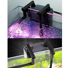 Это хорошее решение для небольшого пресноводного аквариума с повышенными требованиями к качеству воды или для маленького морского аквариума. Наполнители фильтра можно менять на любые необходимые. При использовании в морском аквариуме иногда в навесные фильтры устанавливают скиммер. У нас вы сможете купить навесные (рюкзачные) аквариумные фильтры с доставкой по Москве и Московкой области, продажа фильтров в другие регионы России осуществляется с отправкой транспортными компаниями.