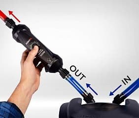 Проточный нагреватель 500 ватт, монтируется в разрез подающего шланга внешнего фильтра. Для аквариума до 500 л.